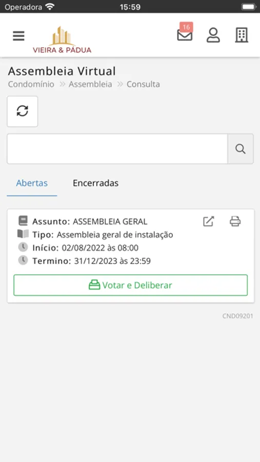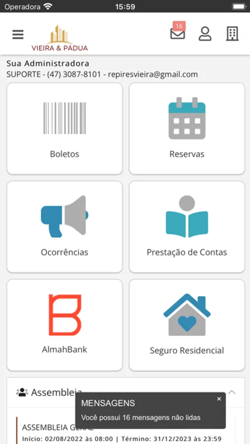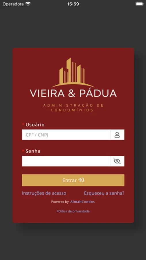 Este aplicativo é exclusivo para usuários da Vieira & Padua Administradora.