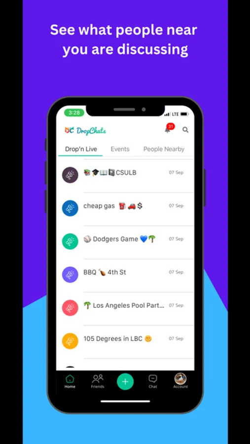 Most things that happen around you go unnoticed … Our lives and daily feeds are filled with information and content that tend to not be relevant to us. DROPCHATS is a People to People app for you to create meaningful connections around you and be present locally and on a global scale instantly anytime. Find out what interests you have in common with nearby people, discover events near you or far from you, talk, and make plans that will impact you and your community.
