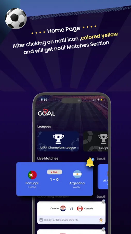 Don't miss a thing, our notification system keep you updated about live game scores instantaneously!