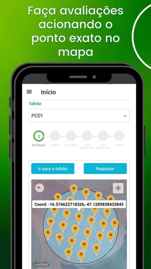 Navegue off-line em cada talhão, sendo direcionado para as regiões da lavoura de acordo com as fases de ciclo de cada cultura. E o mais importante, sincronize tudo em tempo real (ou imediatamente após o acesso a um sinal de rede) na nossa plataforma on-line para que os dados sejam interpretados e decisões possam ser imediatamente tomadas, intermediadas por uma rede de agrônomos experientes subsidiados por ampla rede de pesquisa com os mais recentes produtos e estratégias de manejo.