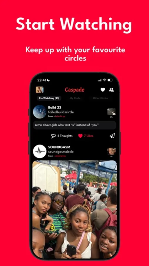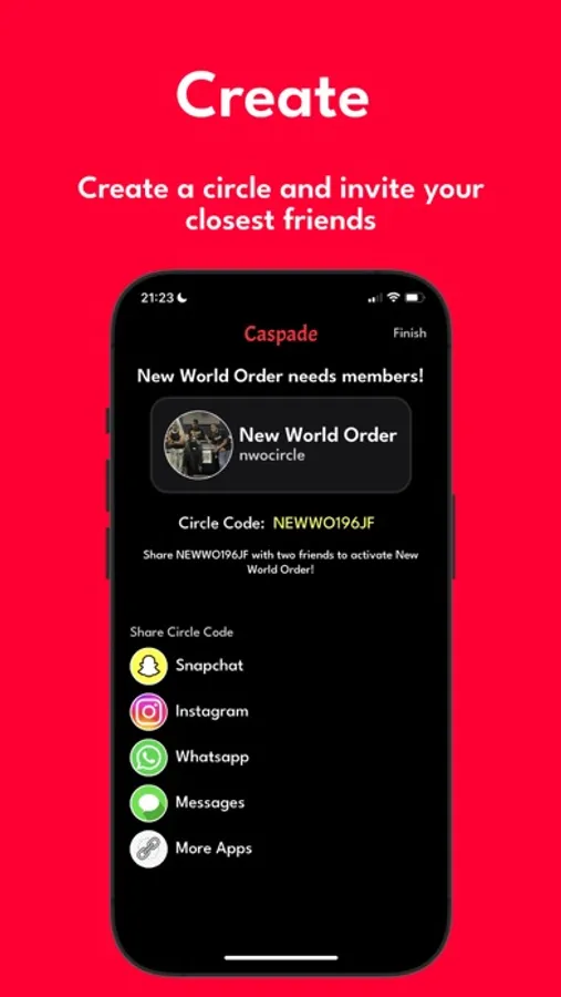 On Caspade, you can make a circle and invite your friends to join it. Circles must have at least three members and cannot have more than ten.
