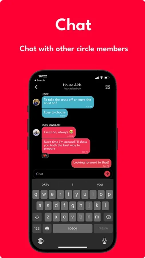 * Chat with other circle members of your circle.