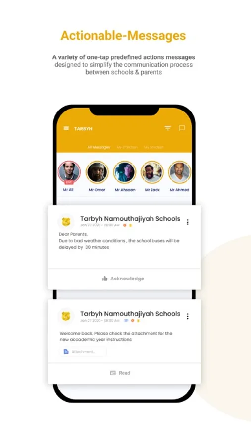 • Actionable interaction: Communicate with teachers and school admins and take action easily wherever you are