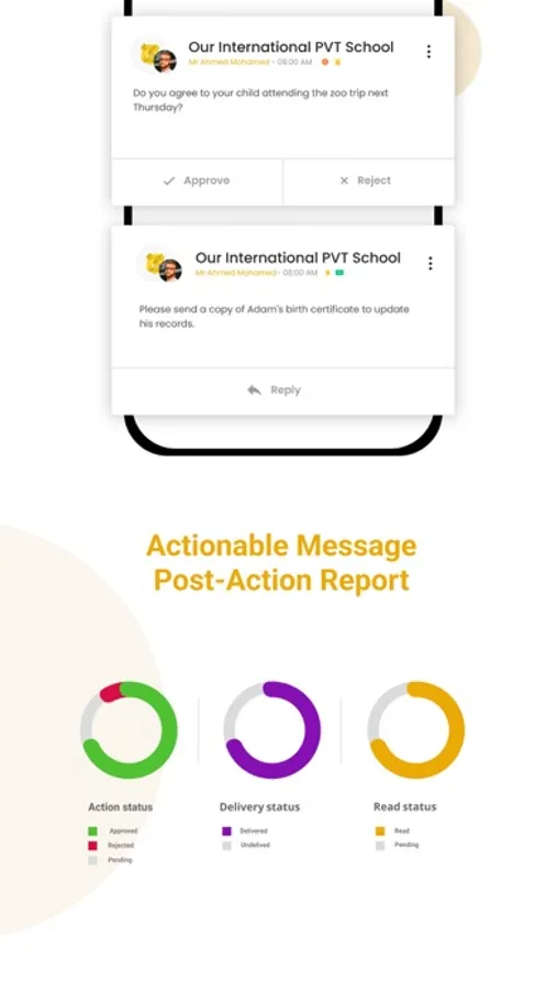 • Active communication: Instantly receive and respond to school updates