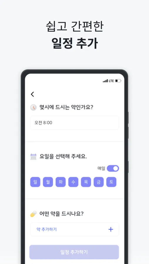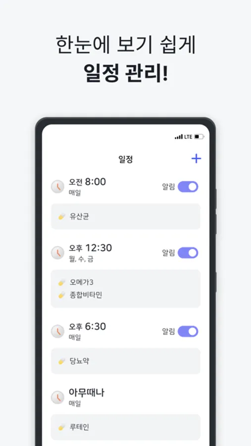 원하는 시간에 약을 섭취할 수 있도록 알림을 보내드려요