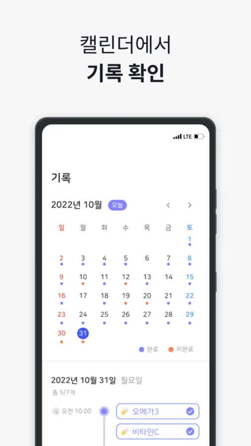 먹은 약은 캘린더에서 기록을 확인할 수 있어요.