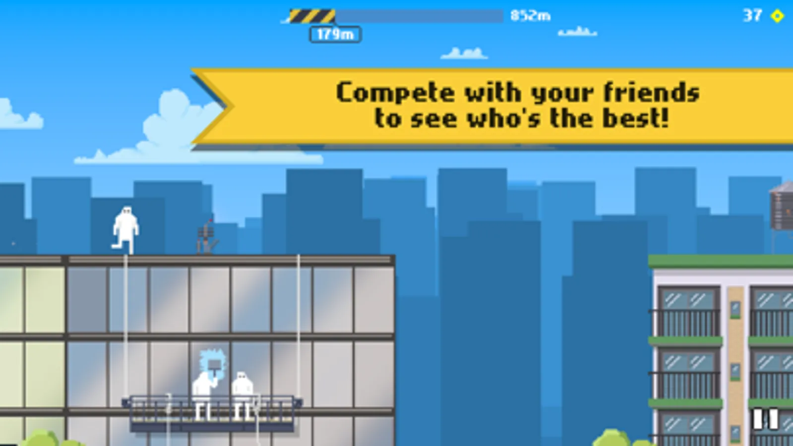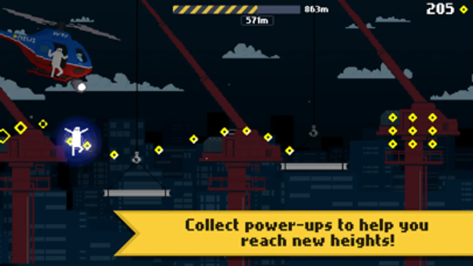 Collect power-ups to help you reach new heights as you compete against your friends on the leaderboards to see who can run the farthest!
