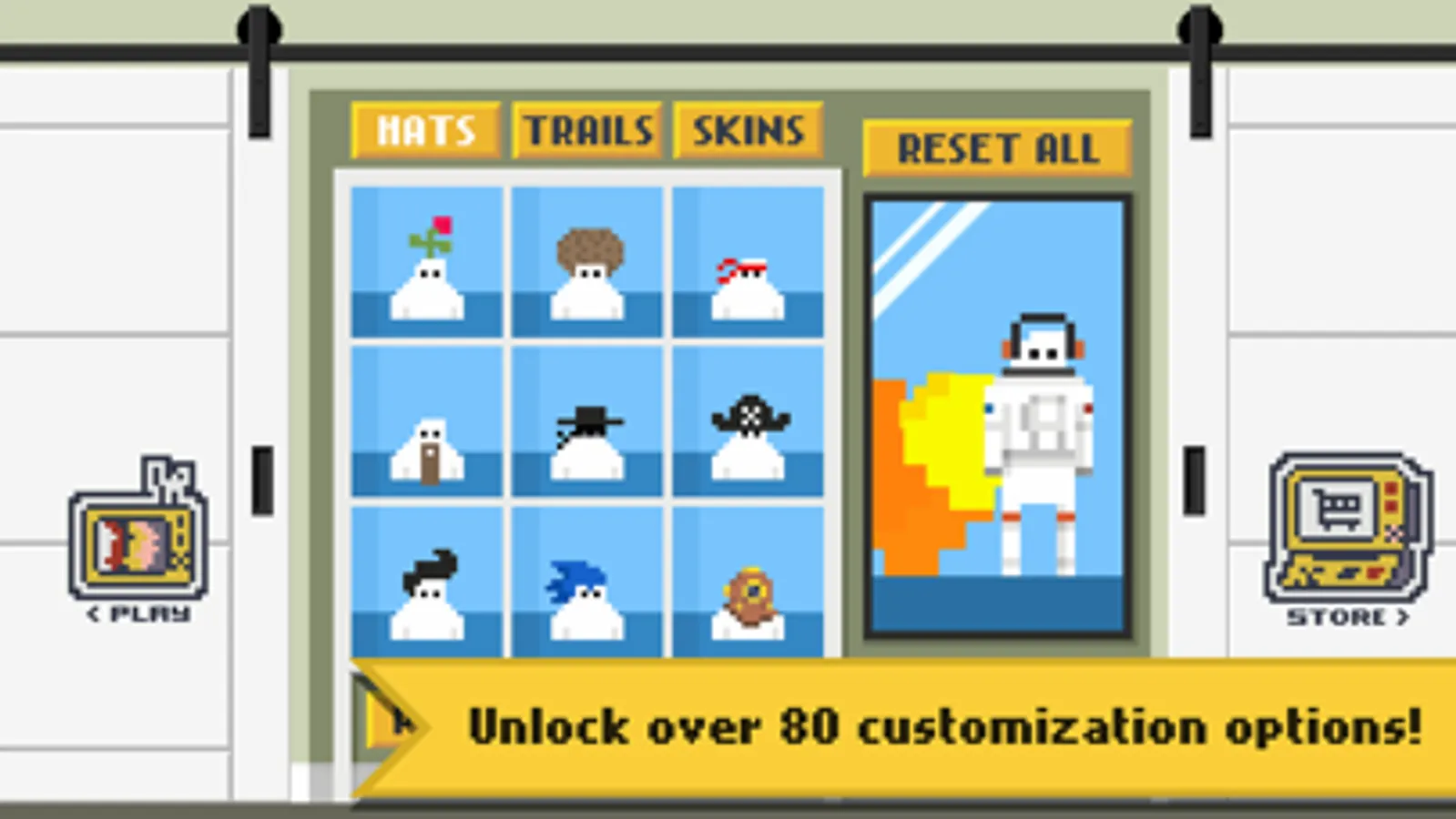 Gather coins to unlock over 80 character customizations including hats, trails, and skins!