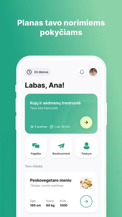 * Mitybos planą, susidedantį iš skanių, sveikų bei lengvai paruošiamų receptų.