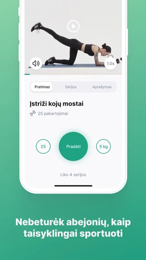 * Sporto programą, susidedančią iš lietuvių kalba aprašytų, nufilmuotų ir įgarsintų sporto pratimų.