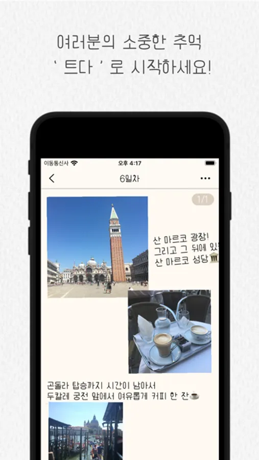 '트다' 공동 편집 기능을 제공합니다. 함께 여행간 사람들을 초대해 같이 여행 다이어리를 남겨보세요.