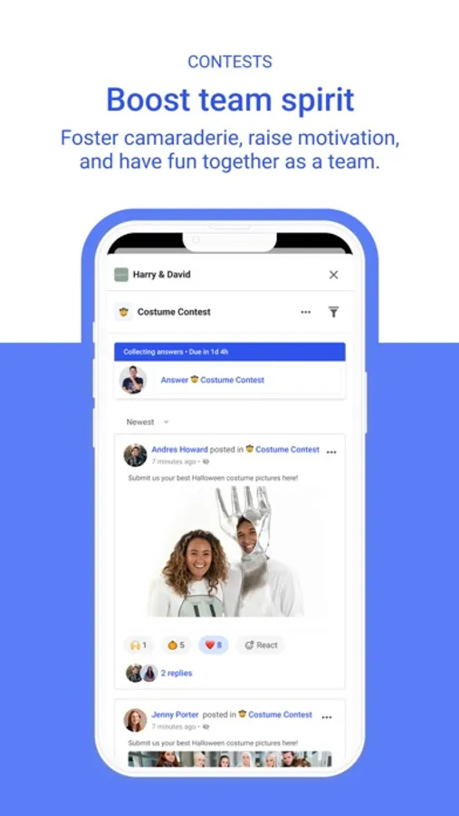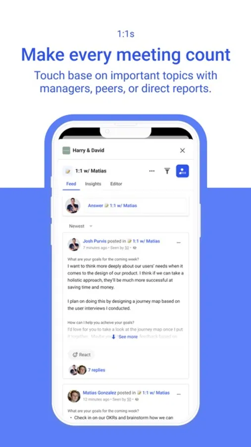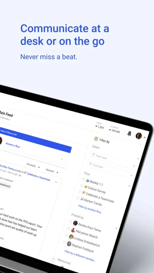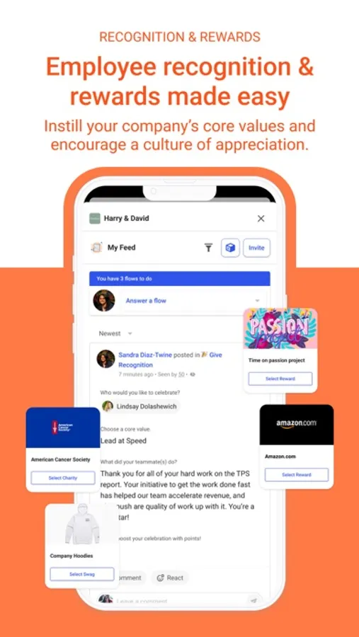 Get your employee engagement covered from A to Z with powerful engagement features such as recognition and rewards, 1:1’s, standup, games and icebreakers, employee nominations, company announcements, team awards and more.