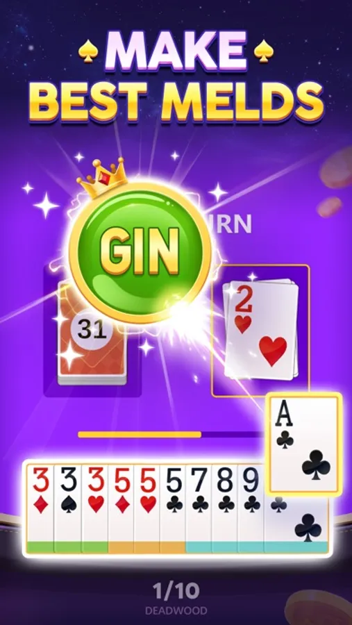 -The objective of Gin Rummy Cash is to collect cards into ‘Melds’ and have as little deadwood as possible at the end of a game.