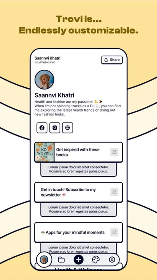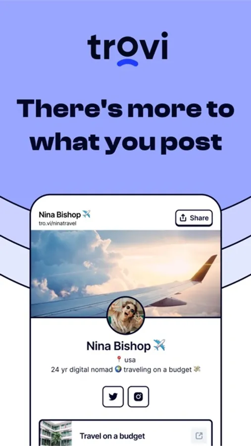 Share your Trovi link in bio with the whole world, or create a quick link to individual items on your profile.