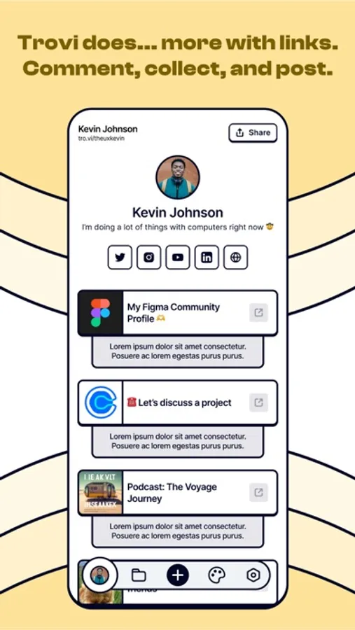 Trovi is your home for curating and showcasing links to your work, your passions, and your recommendations online.