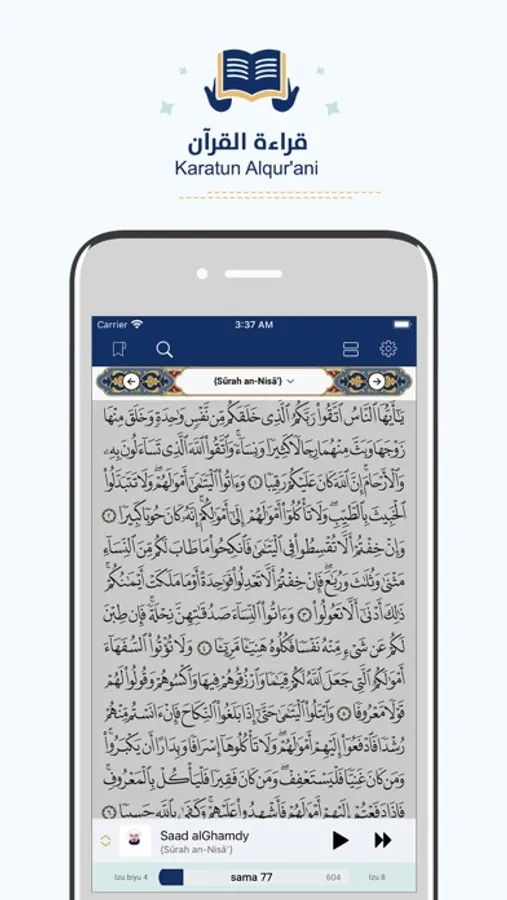 - Karatun Alƙur'ani Ka more da jaratun Alƙur'ani Mai Girma daga kwafi tatacce mai adon mai janhankali