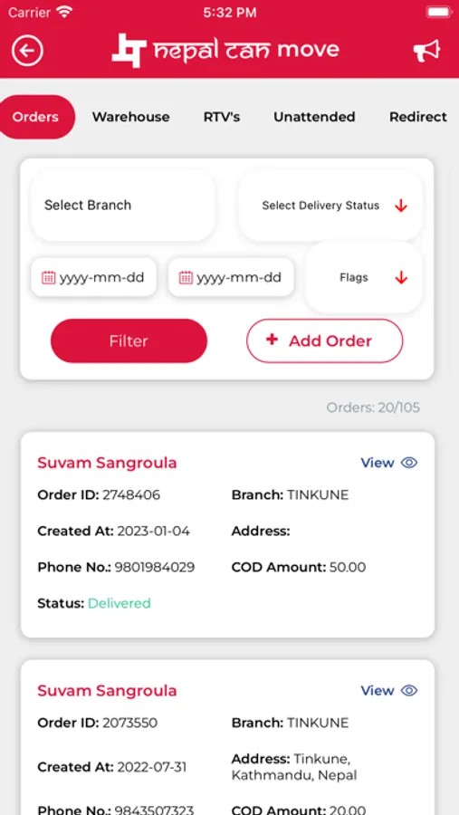 Nepal Can Move(NCM) app for our vendors. NCM operates one of the largest courier, delivery and logistics operations in Nepal.