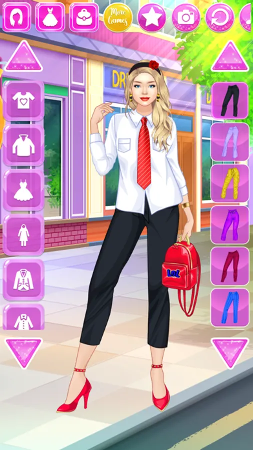 Meet new dress up and makeup girl games free! The huge wardrobe of each model is full of glam dresses and skirts, tops and jackets, trousers, chic shoes, and also jewellery and accessories to complement a fashionable look. Before dressing girl up, choose the color of her skin, eyes, eyebrows, as well as make up: shadows, lipstick and blush, imagine that today you are a makeup artist and take up this styling challenge. It is up to you how to style the outfit of a popular fashion diva or superstar actress today: casual, school, romantic or elegant? With our games for girls you can create your character and become a fashion stylist!