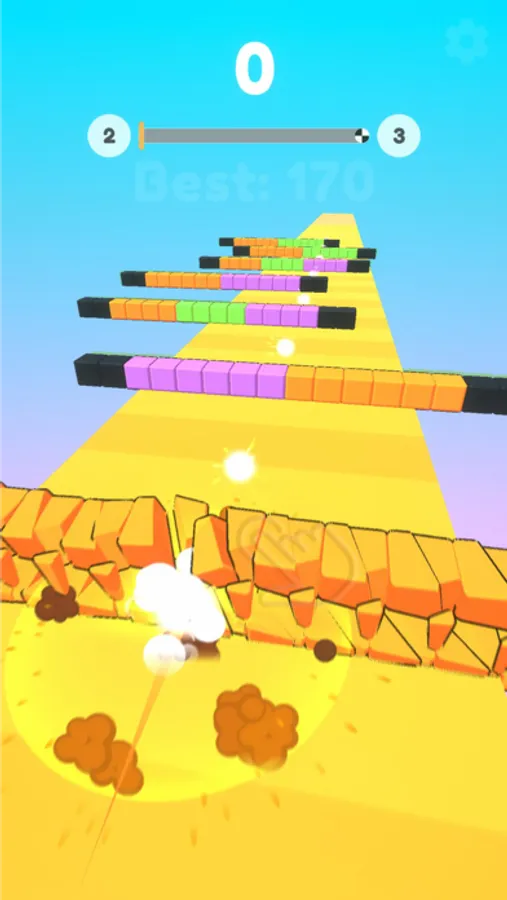 Let the ball pass through the obstacles of the same colors to destroy them.