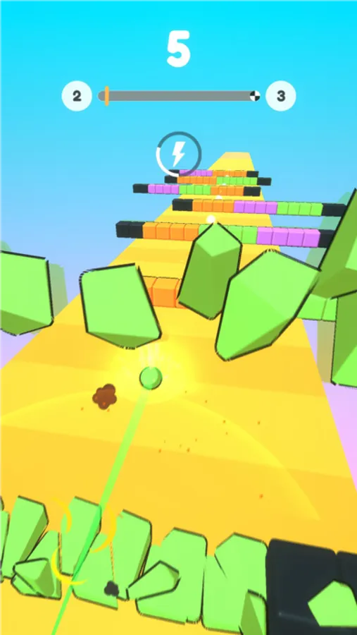 - Move the ball at the right time to destroy the obstacles of the same color.