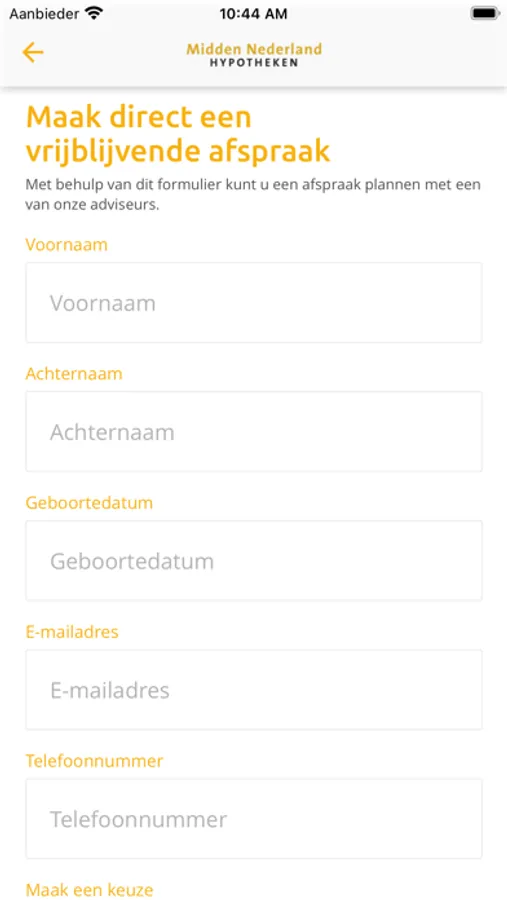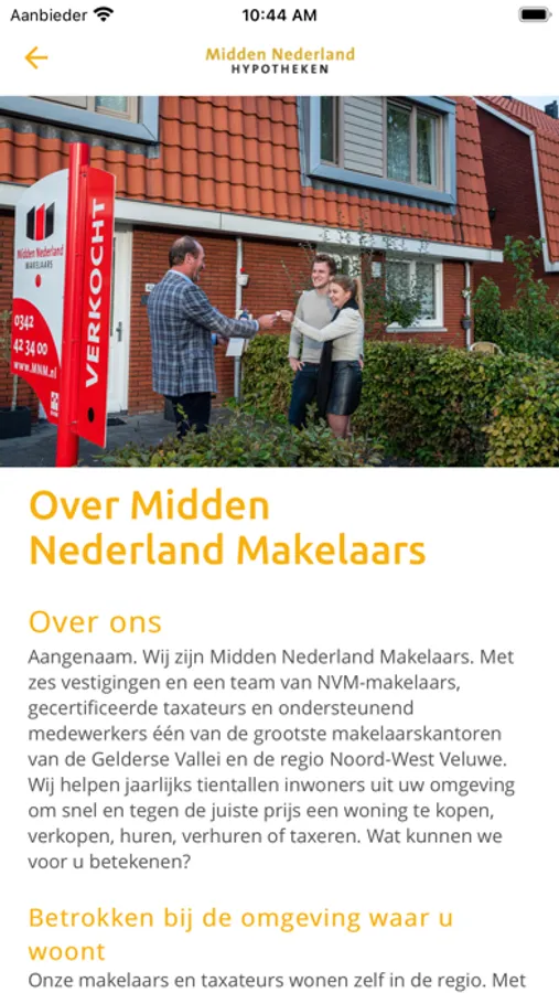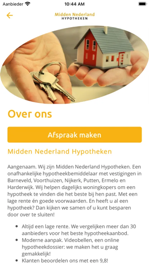 Bij Midden Nederland Hypotheken kunt u niet alleen een hypotheek afsluiten, maar ook een woonlastenverzekering en overlijdensrisicoverzekering. Wel zo gemakkelijk. En doordat onze makelaars in hetzelfde pand zitten, kunnen we nog sneller schakelen en kunt u afspraken combineren. Dat bespaart u veel tijd. Dankzij onze app kunt u nu nog gemakkelijker al uw documenten in zien en in contact komen met een van onze adviseurs.