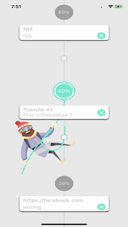 Aplicación que permite, a través de una interfaz intuitiva, visualizar la hoja de ruta del proceso específico en el que se encuentra una persona que ha contratado nuestros servicios,