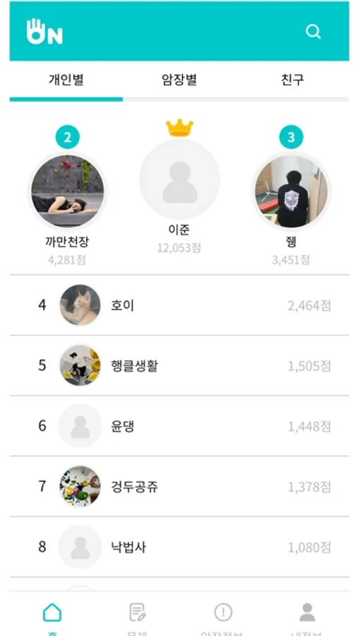 1. 전체 랭킹/암장별/친구별 랭킹 확인 가능