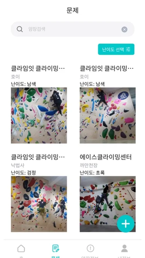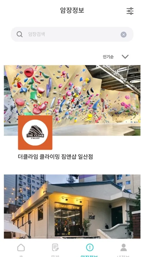 2. 내가 보고싶은 암장, 문제 난이도 검색하고 모아보기 (ex) 더클라임 양재 파랑)