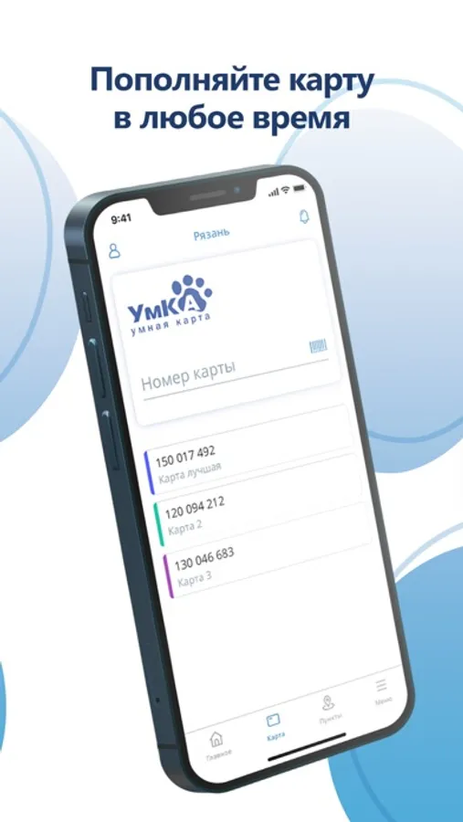 - Возможность сохранения в избранное нескольких номеров транспортных карт и других носителей УмКА