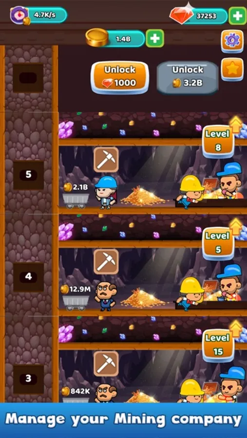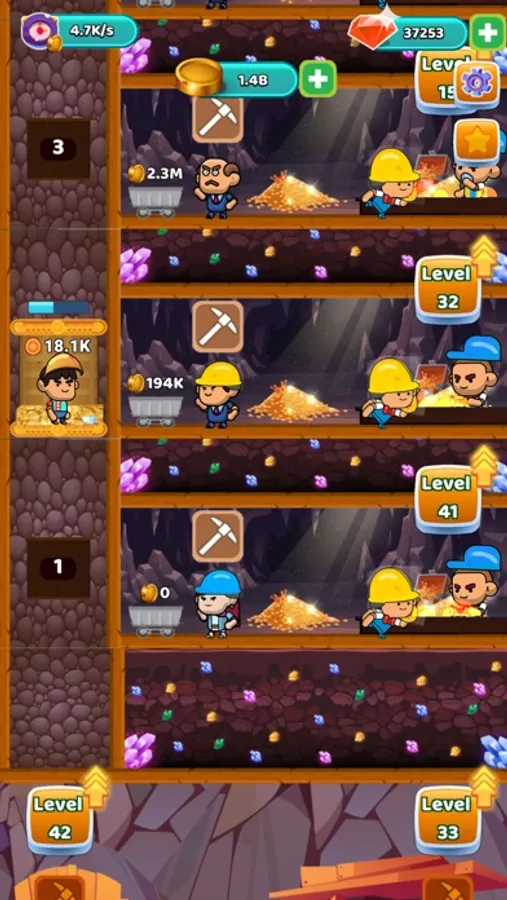 Make more Coins & Gold and then upgrade your mine, level up and become the richest player in this idle Gold miner Game !