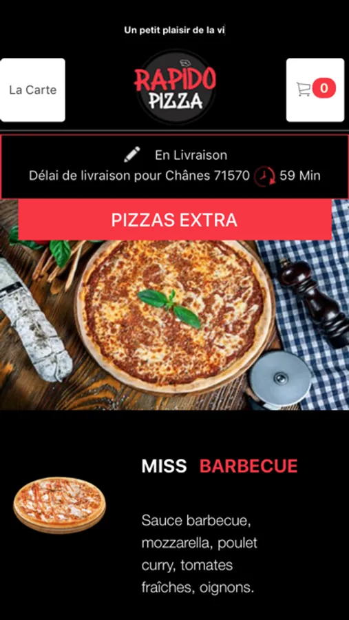 L'application Rapido Pizza vous permet de commander en ligne ou par téléphone via votre application. Vous pouvez consulter notre carte et choisir vos produits.