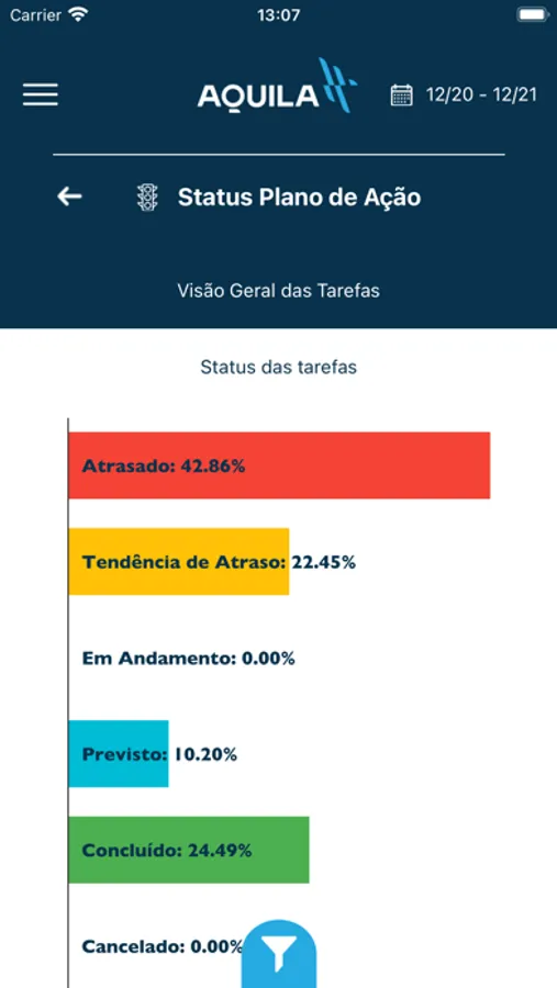 No plano de ação é possível identificar as ações que impactam no resultado dos indicadores