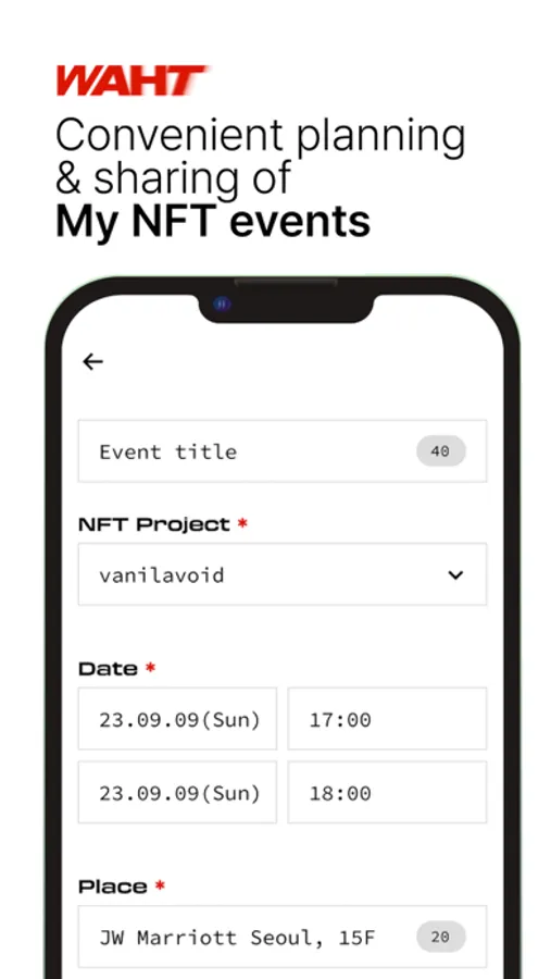 · Photo (Option) : Enable WAHT to access your photo for uploading and setting events