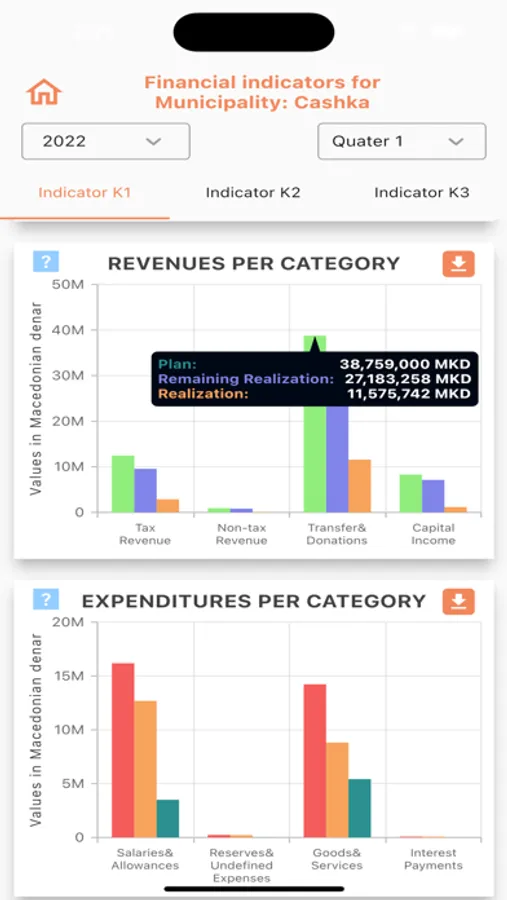The e-dashboard is a mobile-based toll created to allow municipalities from North Macedonia to present their financial data (revenues, expenditures, liabilities, borrowings, and general budget realization) in a clear and simple way, that is understandable for the municipal administration, municipal councilors and the general public.