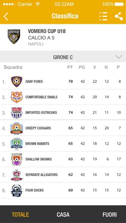- Consultazione Classifiche Squadre e Giocatori