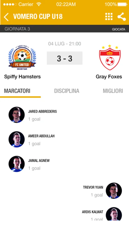 - Votazione prestazioni Giocatori