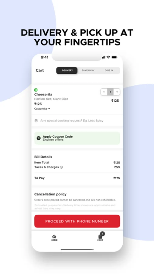*Easy order customization -- Order from our wide range of menu and easy customisation options and addons.