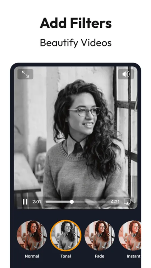 Video Filters - Do you not like the lighting in the videos you just captured? No worries, the Video editing app comes up with Video Filters feature by which you can change the filter and make an awesome video.