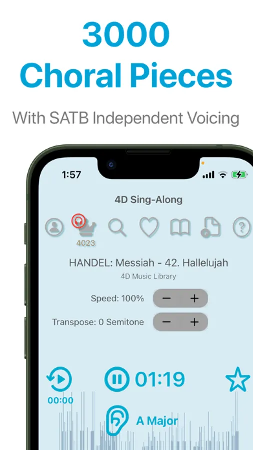 Are you looking to take your singing to the next level? Look no further than the 4D Sing-Along App! With 4D Sing-Along, you can listen to your choral parts in any speed, along with high quality accompaniment. Plus, you can join the 4D Sing-Along Hall of Fame and earn points as you sing. Don't miss out on this amazing opportunity to improve your singing skills and join the community today!
