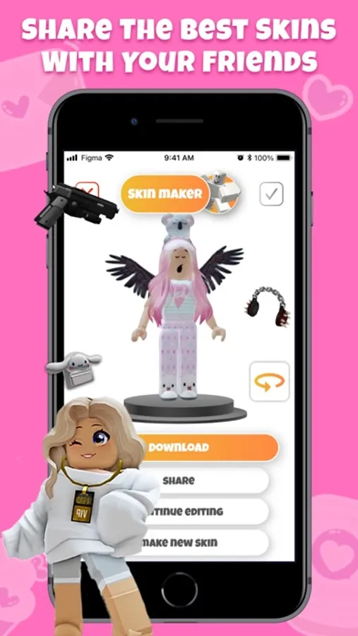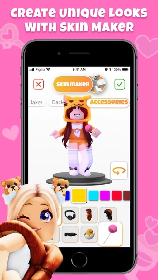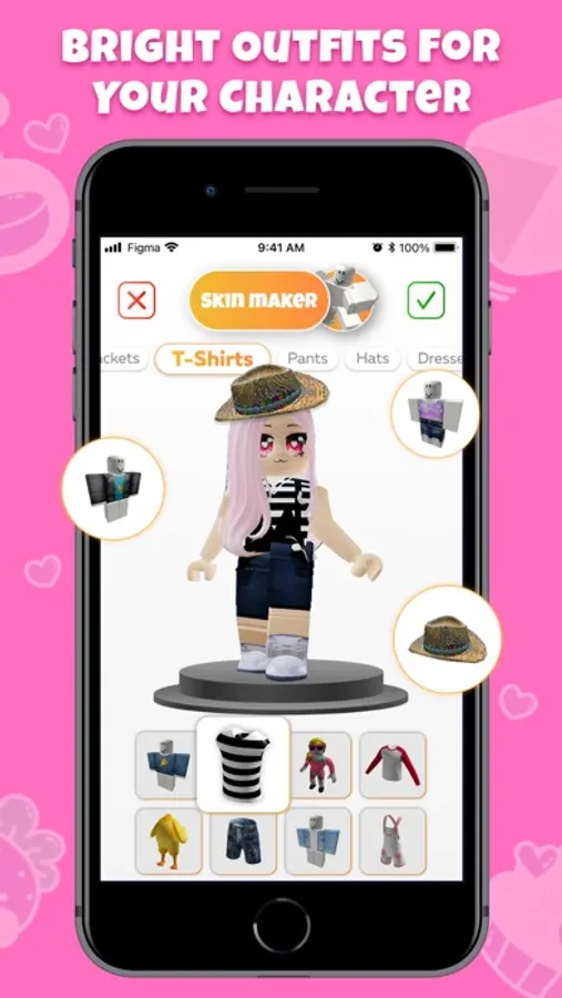 Girls Skins Maker for Roblox - with this app you will be able to make a suitable skin for yourself. Feel like a designer come up with outfit ideas and create outfits which will be suitable for you. We can offer you various t-shirts, fashionable accessories and hair . Make special costume or choose something casual by picking a hoodie or jacket. You can also try 3d clothing. Create your own character and be unique. Use templates and customize them. Come up with cool avatar ideas and make your avatar look special and take pictures of it.