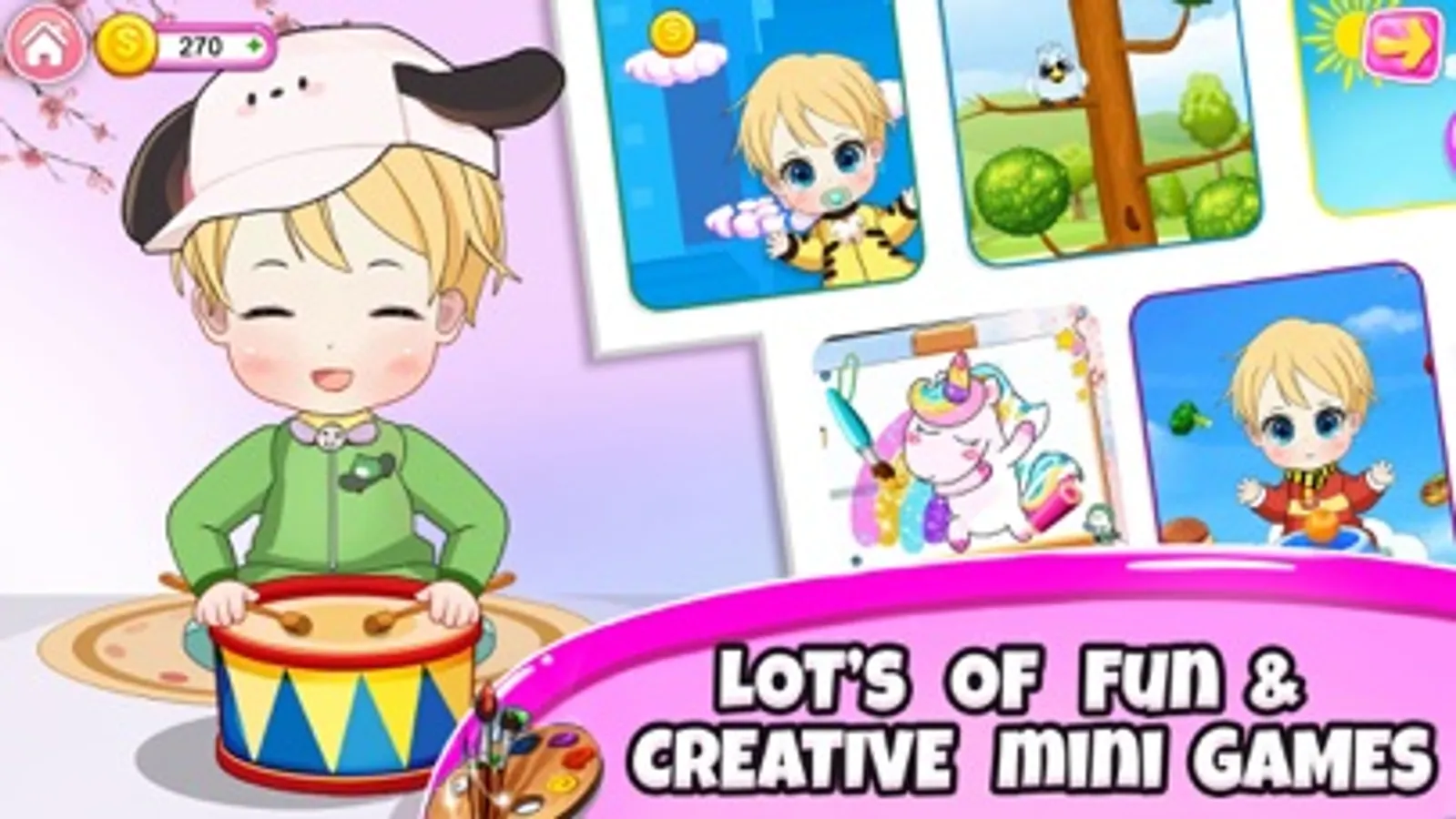 Here the real joy of newborn baby games has begun. Decorate the newborn baby room and choose the best item for the baby room. What about an interesting playroom full of toys? Baby will love this. A babysitter task never ends here.It's time for baby bath, give him a warm bath and select a nice dress for the baby and also change his diaper. After a bath, the baby must be hungry now let's feed him the milk. As the baby's stomach is full now he will play in his toy room.