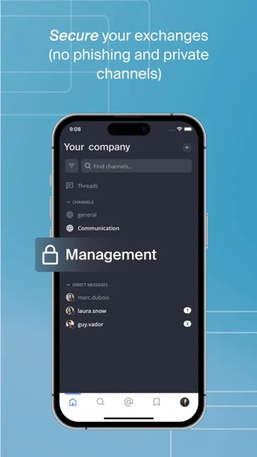 - Communicate with your teams and organise your conversations via public or private channels.