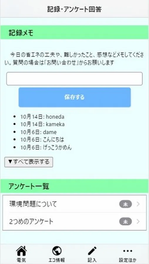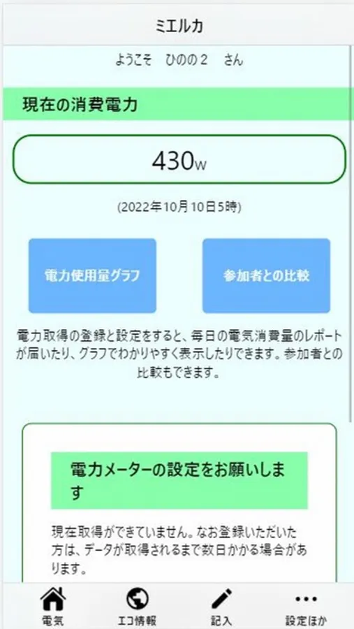 自宅の電力消費量をリアルタイムでスマホで確認できます。クイズ・アンケートのほか、省エネの情報も確認することができるツールとして用意しています。