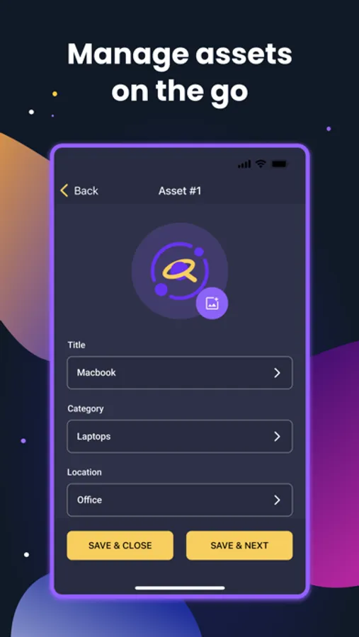 The mobile app is designed as a helping tool for the primary web system. Use it to scan QR codes and keep your assets on track in both digital and physical worlds.