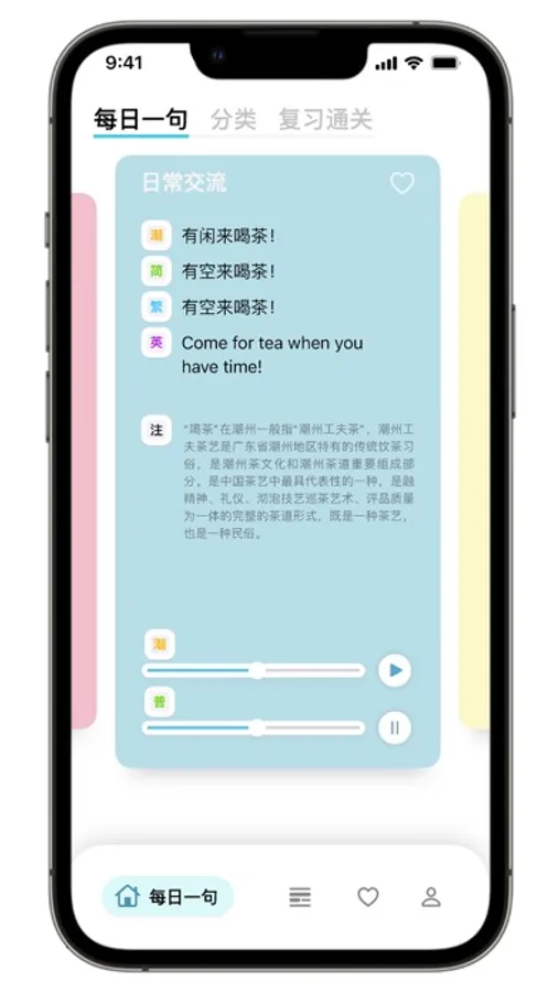 “潮州话 呾你知”,是一款面向全球潮州潮州话爱好者开发的学习软件,收集的潮州话包括但不局限于潮州童谣、俗语、谚语、日常用语等。为更好让世界各地朋友了解潮州,软件还专门设计了潮州文化的展示和推广的窗口,旨在帮助世界各地潮人了解潮州民俗、饮食、工艺等特色文化。