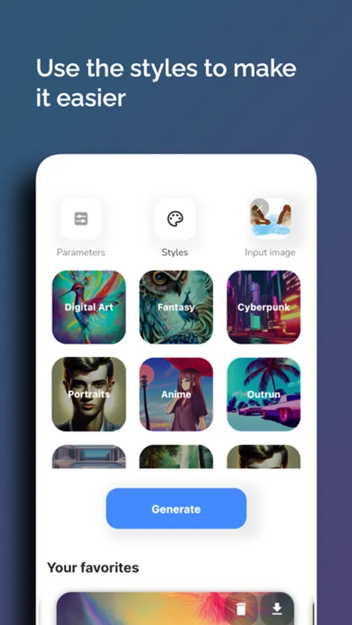 If you need inspiration for your next creation, need to make a quick sketch for your art project, or you simply want to have some fun, ImmaginAI can help you with that. You can also easily store and download your favorite creations.