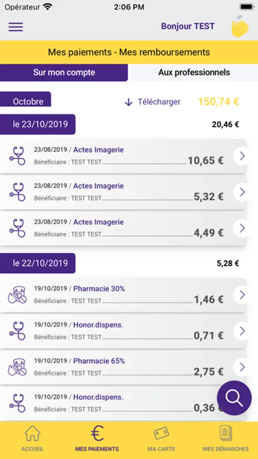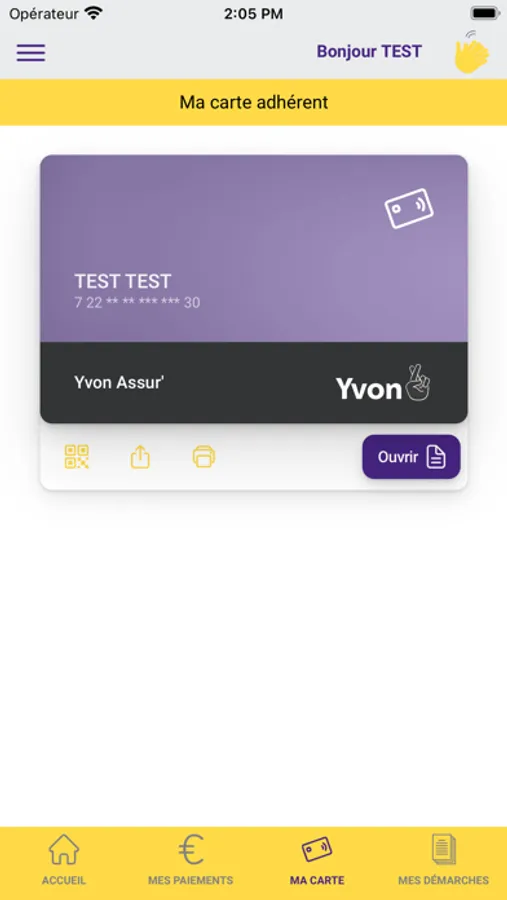 - Votre carte adhérent virtuelle pour justifier de vos droits auprès des professionnels et établissements de santé