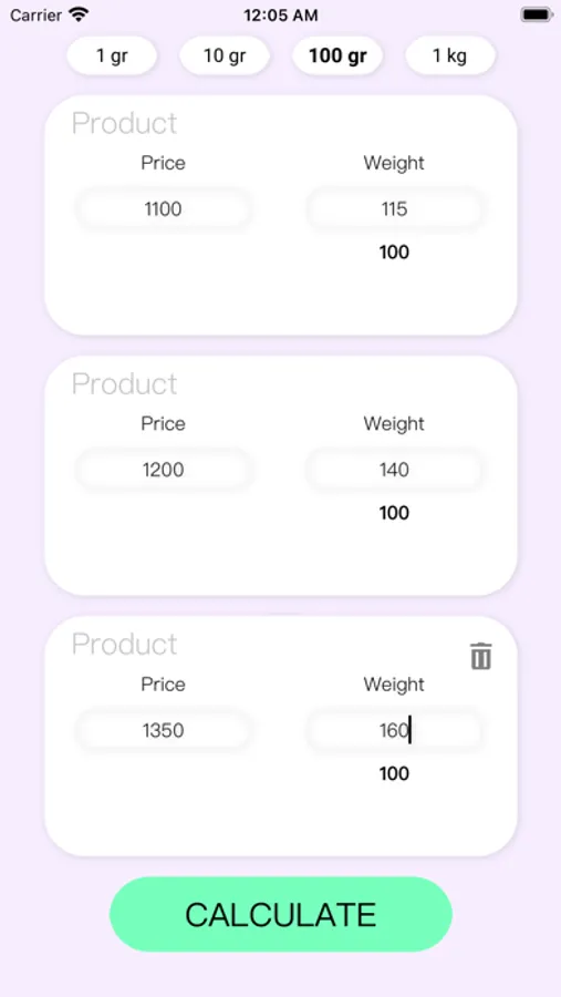 Benefiter is perfect to learn the cheapest price of the product per 1, 10, 100 gramms or even one kilogram!