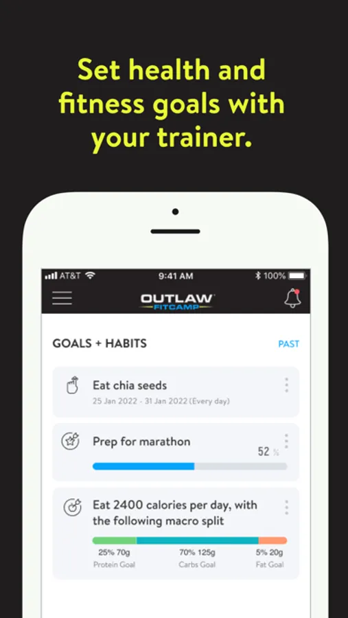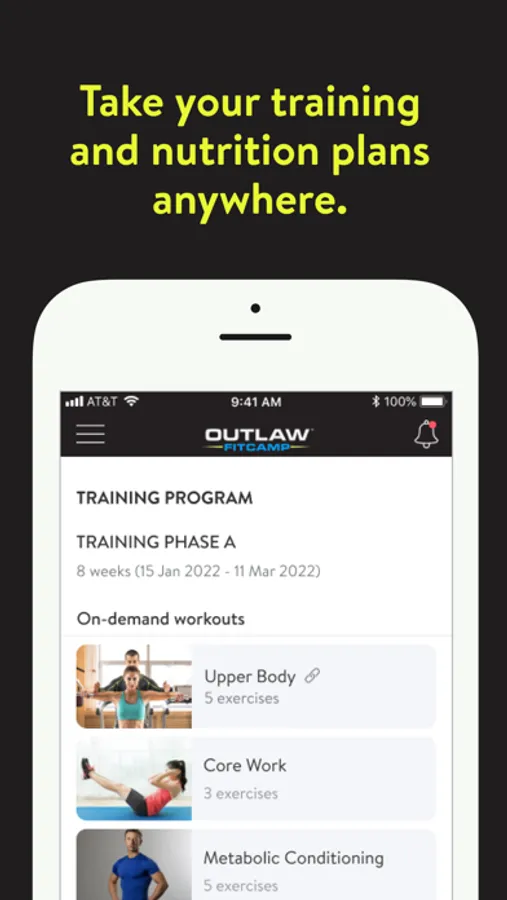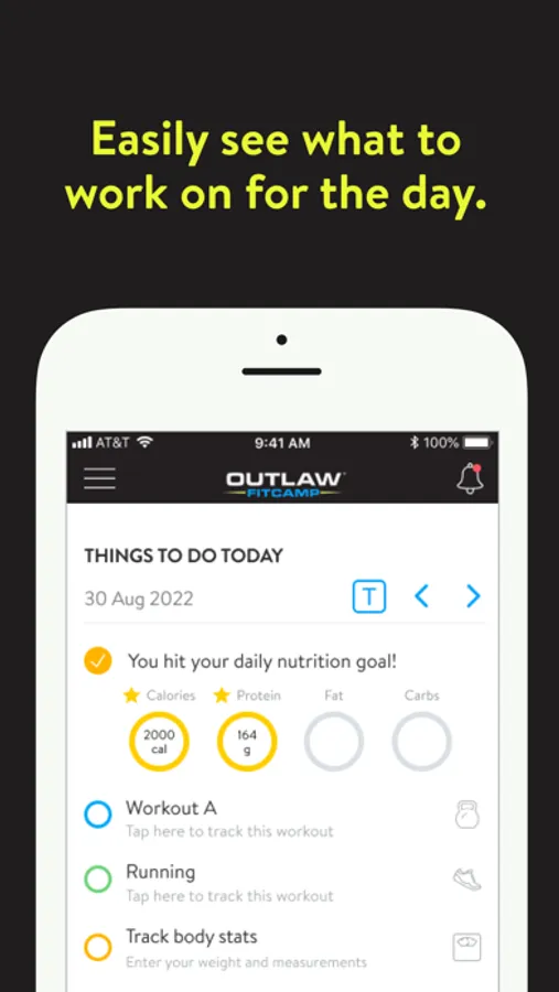 With the Outlaw FitCamp Performance App, you will have access to workout programs designed specifically to help you reach your fitness and health goals! You can follow & track your workouts, your nutrition, your lifestyle habits, measurements and results–all with the help of your coach.