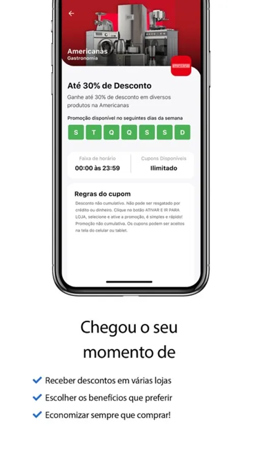 Navegue por um cardápio de ofertas com marcas parceiras de diversos segmentos.